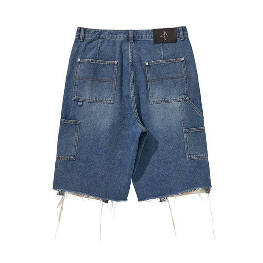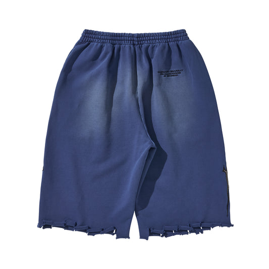 DESTROYED CROSS DENIM PANTS / BLUE