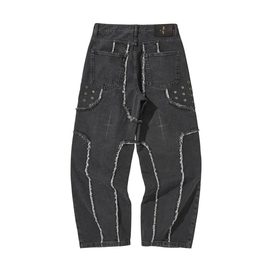 DESTROYED CROSS DENIM PANTS / BLACK