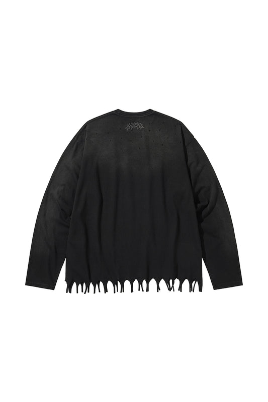 FRINGE LONG SLEEVE T-SHIRTS / BLACK