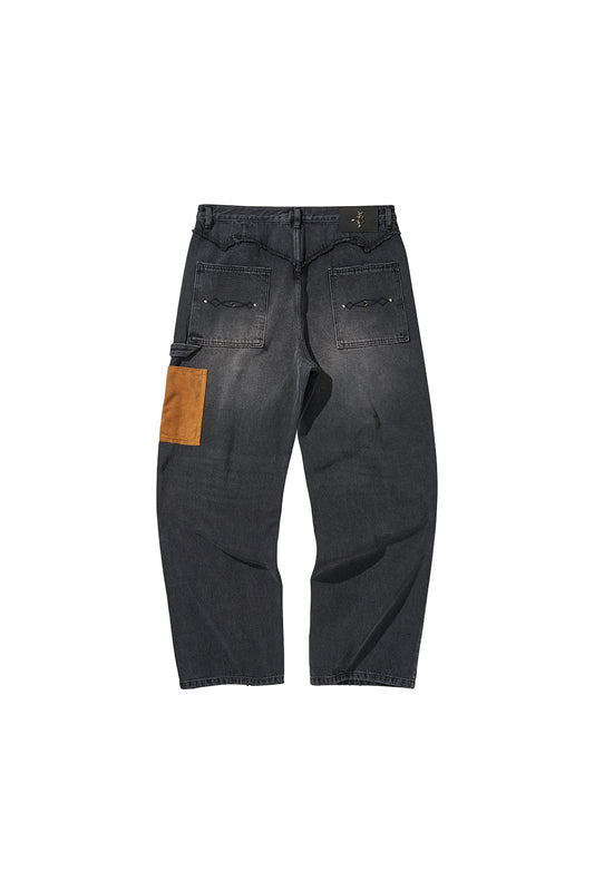 WESTERN DOUBLE KNEE DENIM PANTS / BLACK