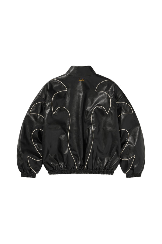 WESTERN FLAME LEATHER TRACK JACKET / BLACK