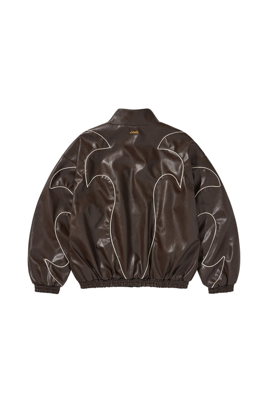 WESTERN FLAME LEATHER TRACK JACKET / BROWN