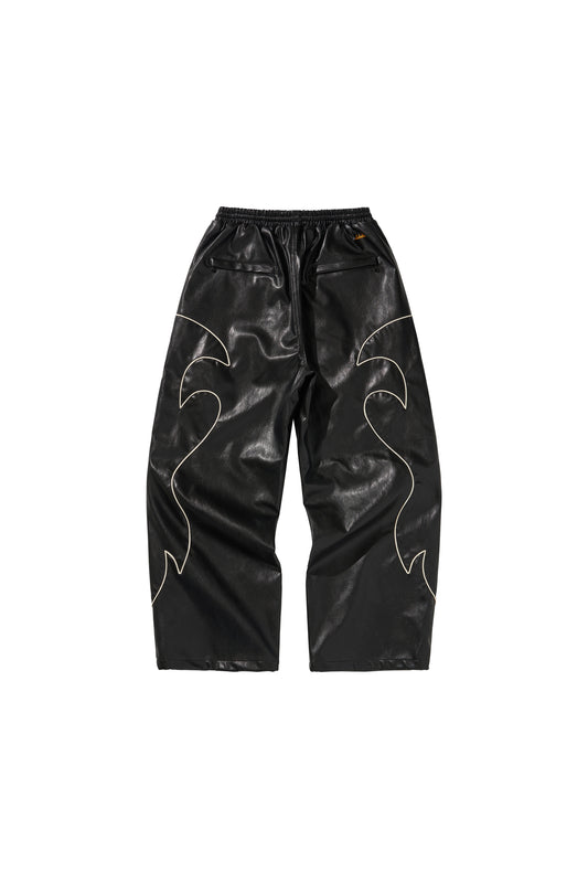 WESTERN FLAME LEATHER TRACK PANTS / BLACK
