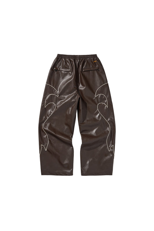 WESTERN FLAME LEATHER TRACK PANTS / BROWN