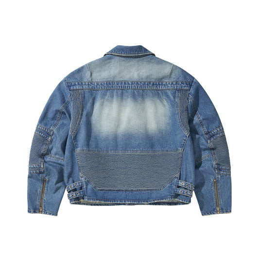 WIDE DENIM RIDER JACKET / BLUE