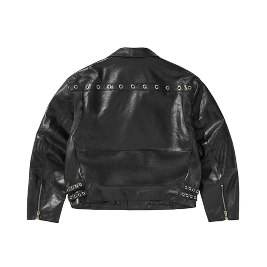 WIDE LEATHER RIDER JACKET / BLACK