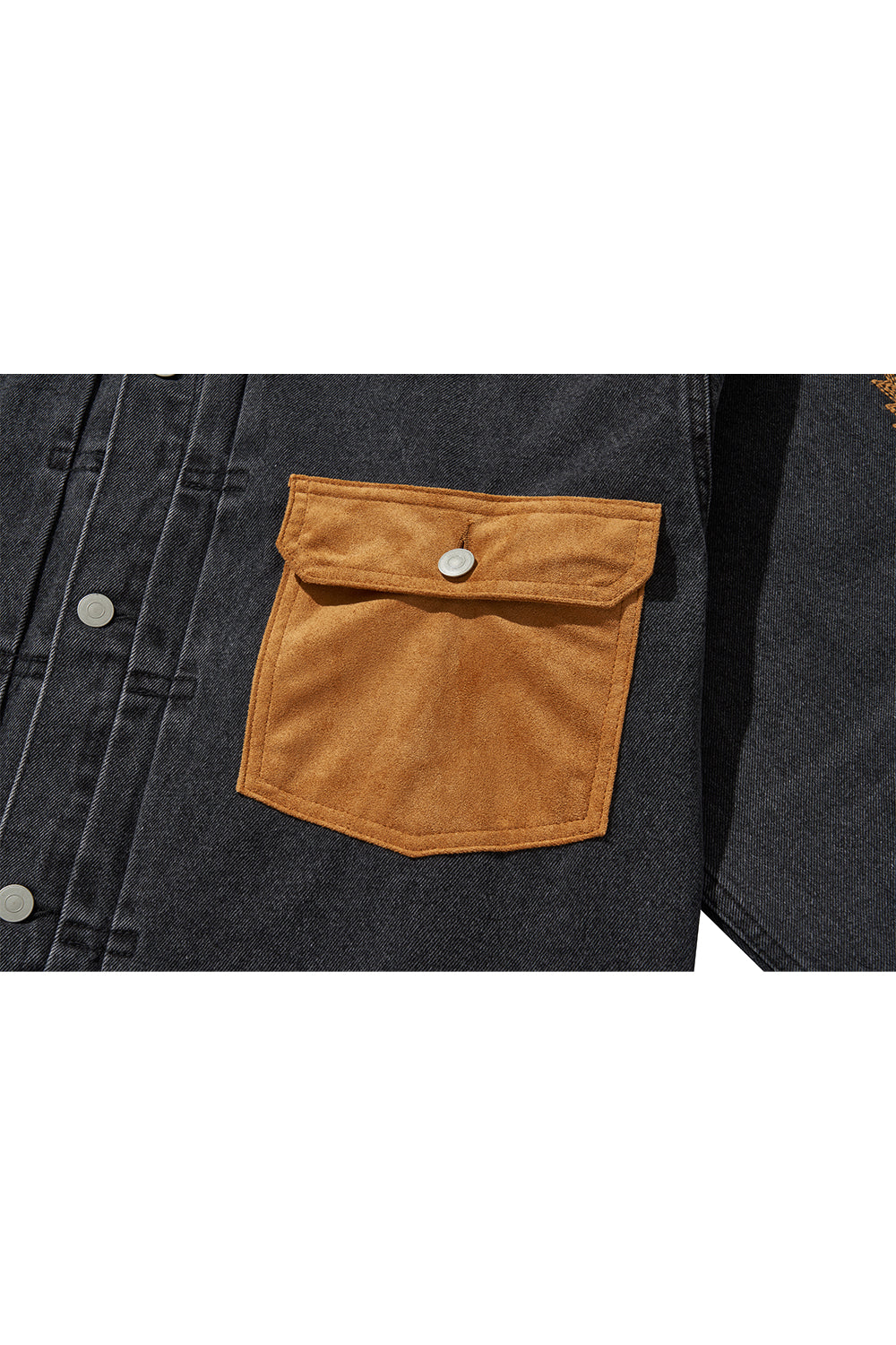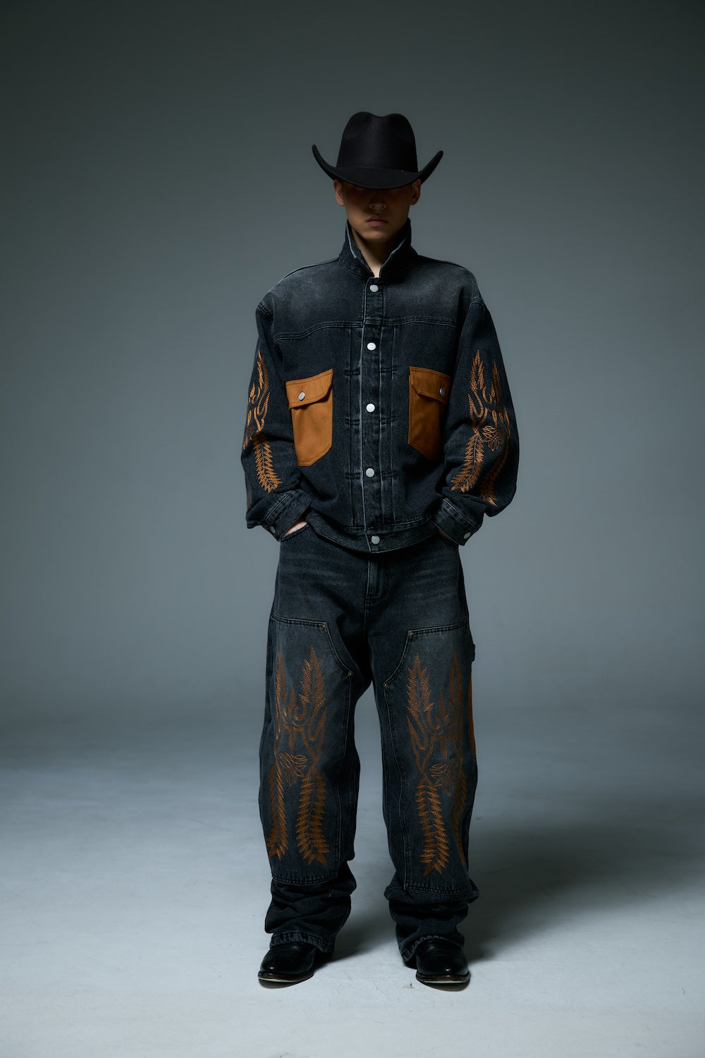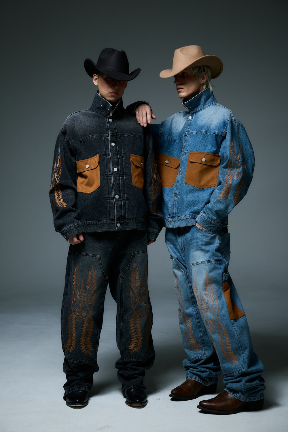 ・襟にウエスタンステッチ、ビジュー、スタッズを配置