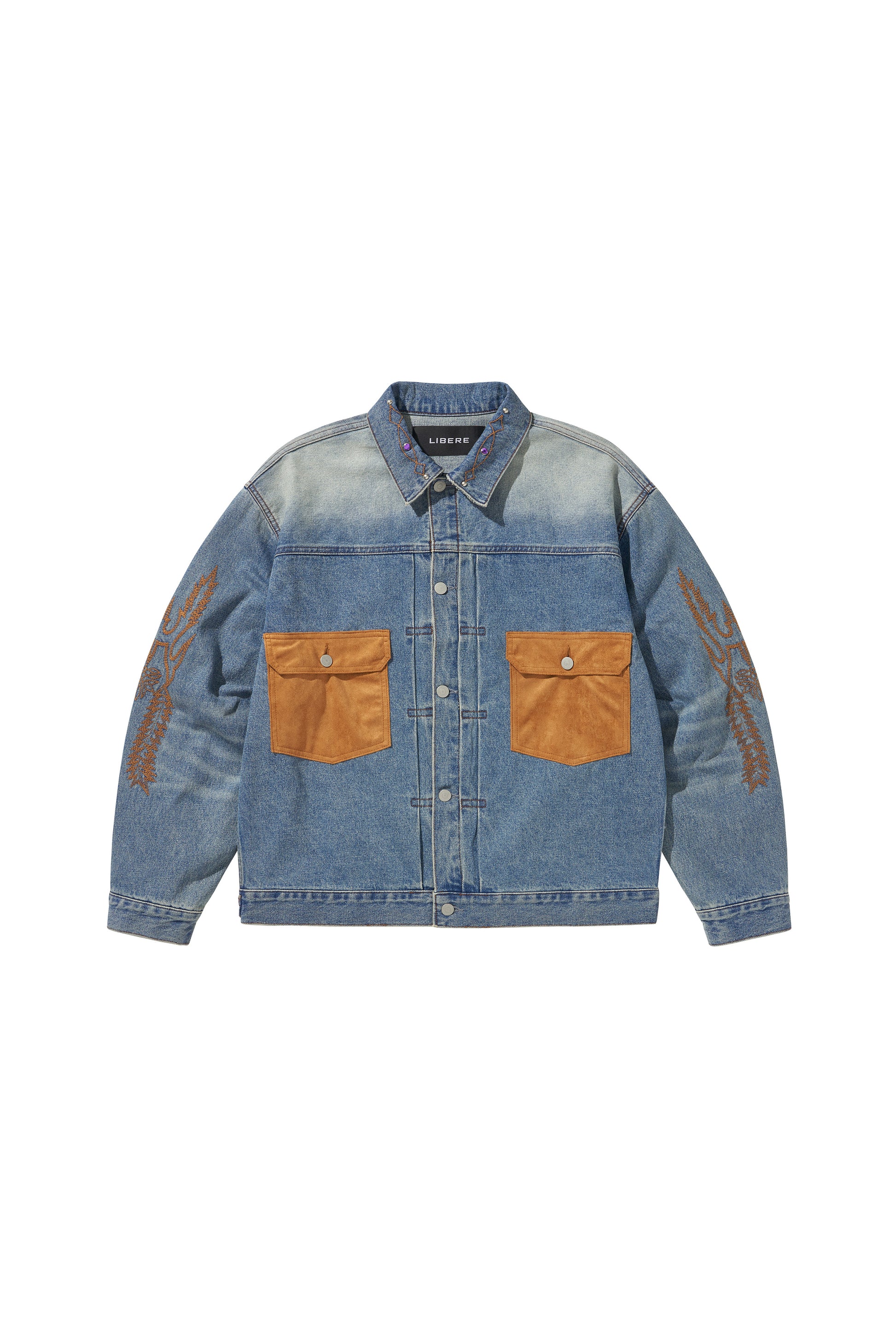 ・襟にウエスタンステッチ、ビジュー、スタッズを配置
