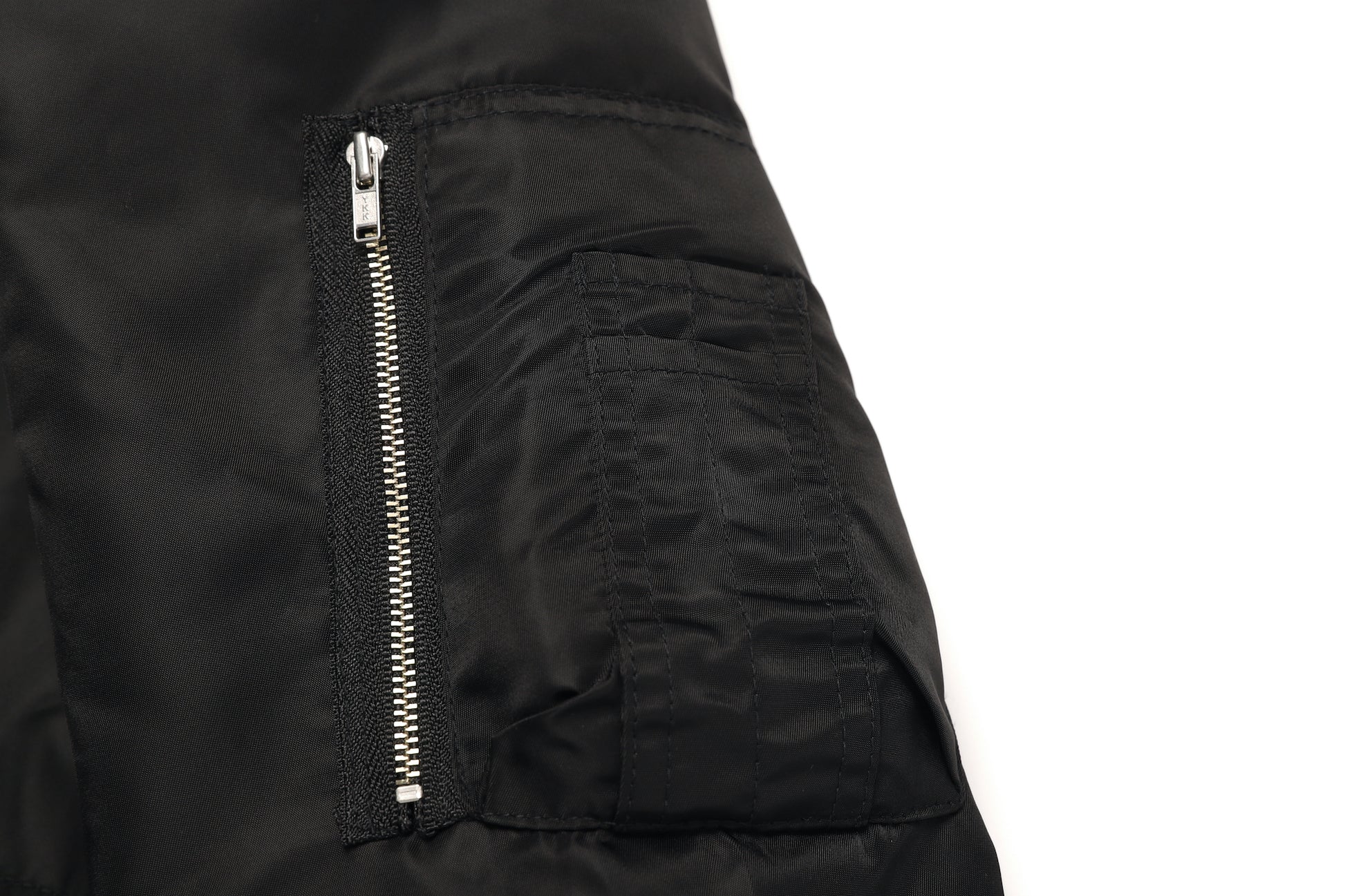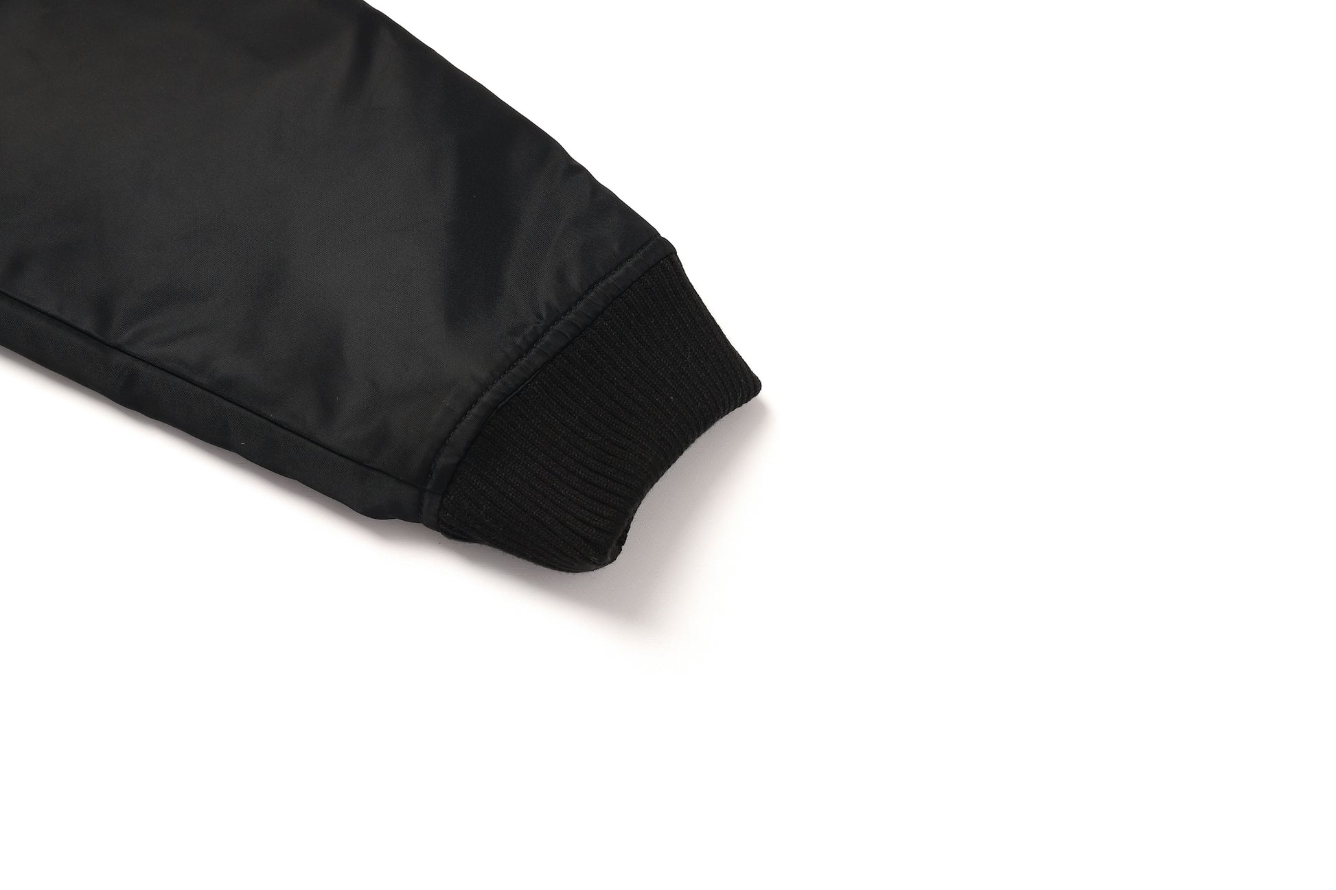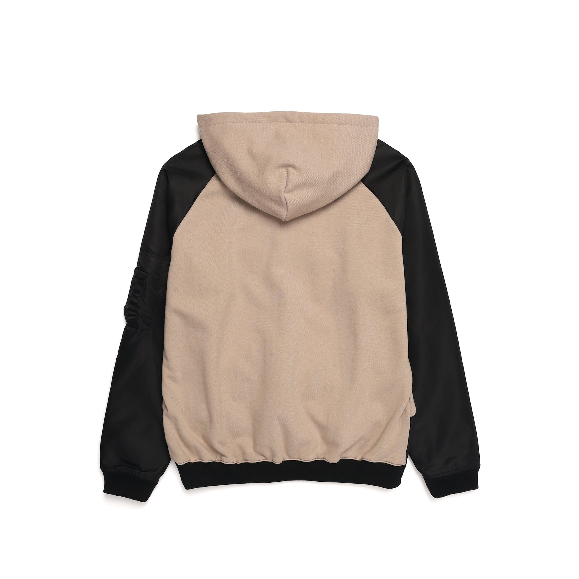 スウェットとMA-1に使われるツイルを切り替えて組み合わせたドッキングフーディー。
