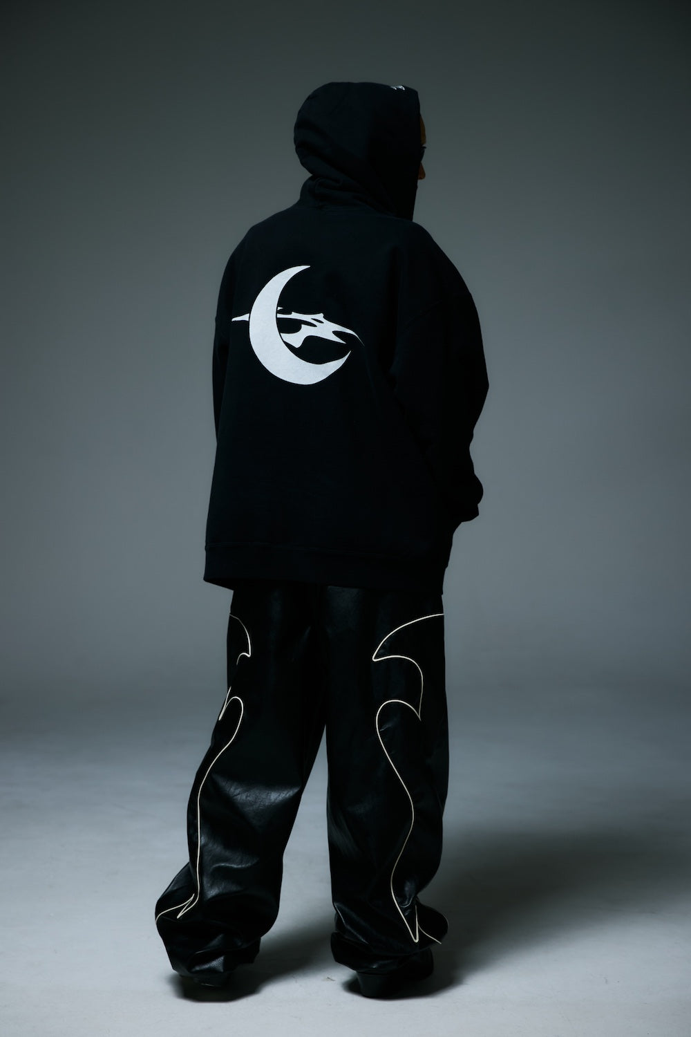 ・バックにモチーフグラフィック、フードにテーマロゴプリント