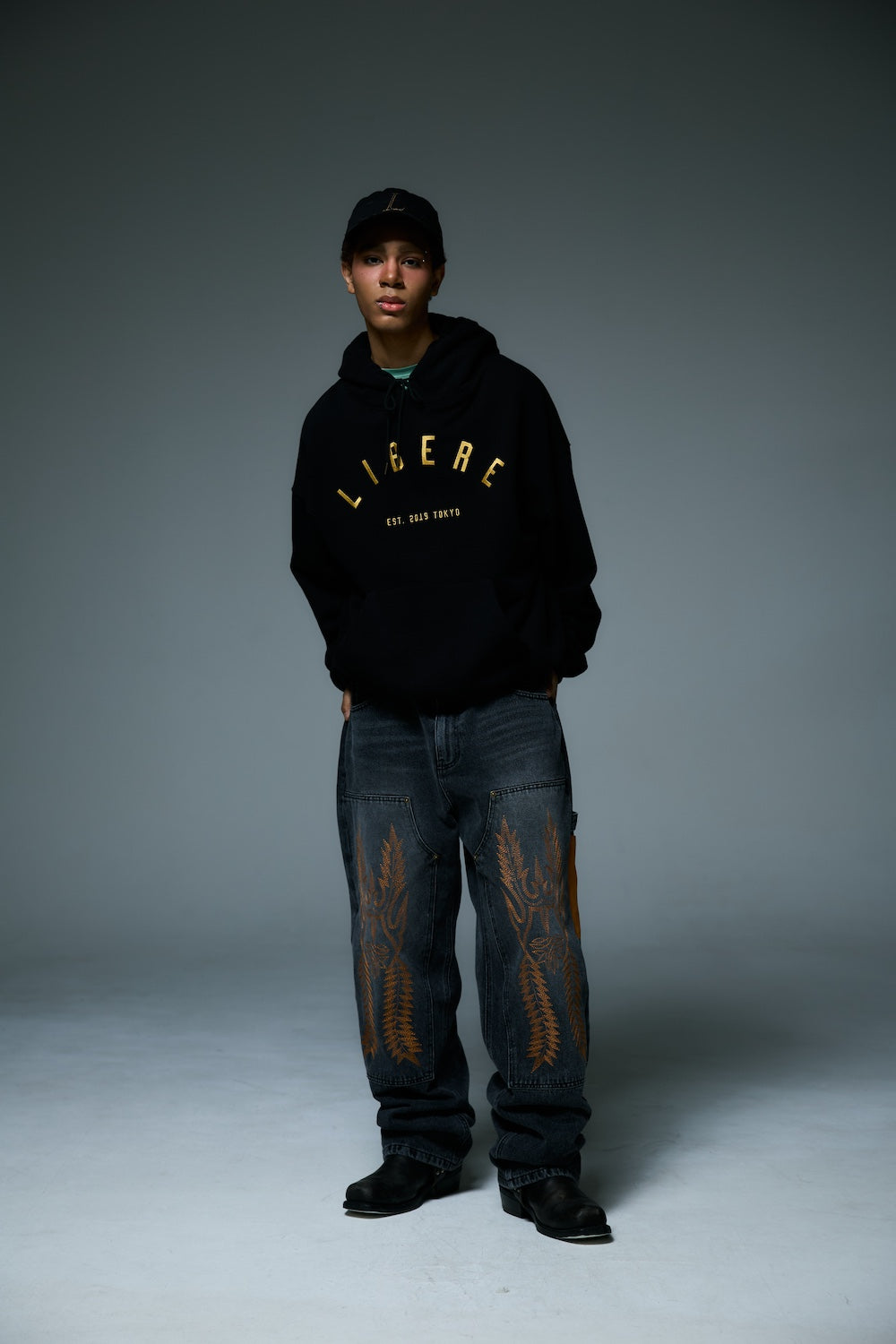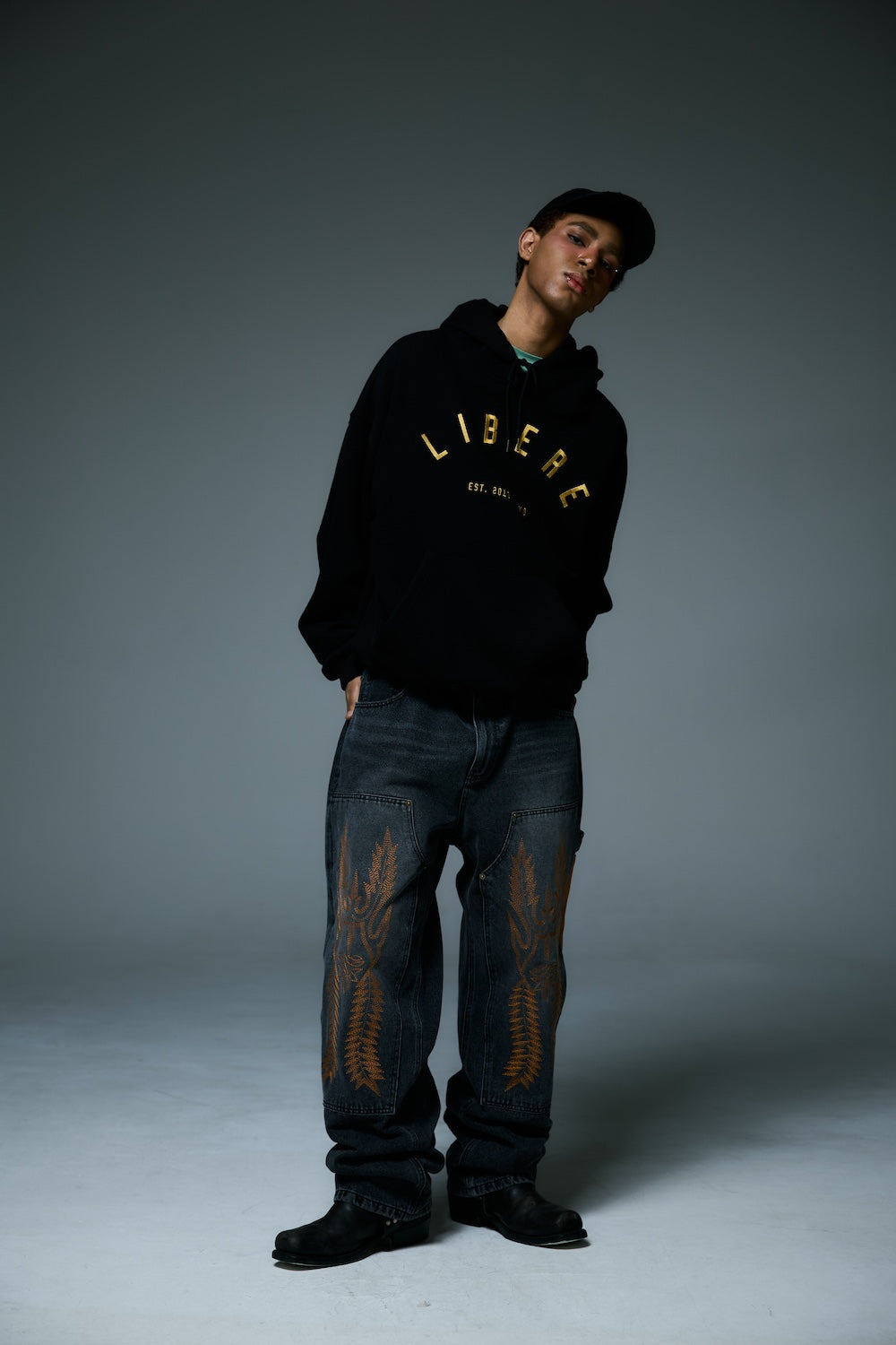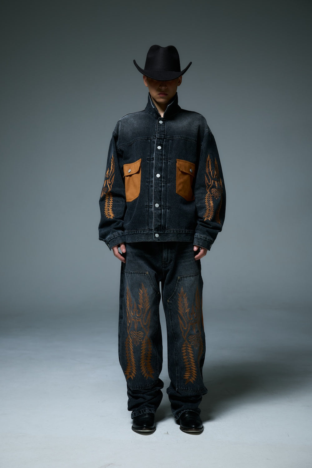 WESTERN DOUBLE KNEE DENIM PANTS / BLACK